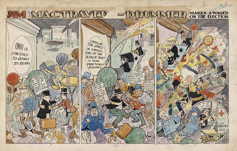 Immigrati europei di diversa provenienza, questi autori lavoravano per la stampa quotidiana e rappresentano una sorta di summa dell’arte del fumetto degli esordi. È il dispiegarsi in sequenze di un vero e proprio nuovo linguaggio artistico e narrativo, capace di comunicare potentemente – tra stereotipi, ironia, necessità tecniche – la realtà sociale dell’epoca.