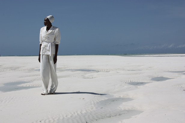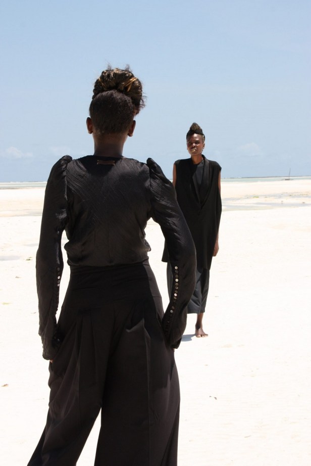 Toni charcoal, bianchi, sabbia e rosso vermiglio, caratterizzano le fotografie di Santafrika dove le modelle keniane sono ritratte nell’anima pura e naturale delle bianche spiagge di Watamu. Scatti grafici e netti come se soggetto e ambiente diventassero una superficie all’unisono.