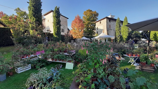 Maestri artigiani e vivaisti di nicchia al Castello di Strassoldo di Sopra decorato con fantasiosi addobbi autunnali nell’omonimo paesino della verde pianura friulana fra i Borghi più Belli d’Italia.