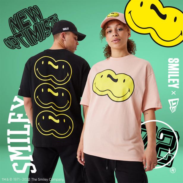 Lo Smiley, usato per la prima volta nel 1972 per contrassegnare le notizie positive su alcuni dei principali quotidiani europei, è diventato una delle più importanti icone culturali degli ultimi 50 anni in vari ambiti, dal graphic design al simbolismo della subcultura, guadagnandosi la fama di aggregatore di persone in tempi di confusione. Questo spirito di unione lo ritroviamo anche nelle radici di New Era, un brand che unisce fan di qualsiasi estrazione sociale e li incoraggia a unirsi per dimostrare il loro affetto e attaccamento verso una squadra, un brand, un artista o un atleta.