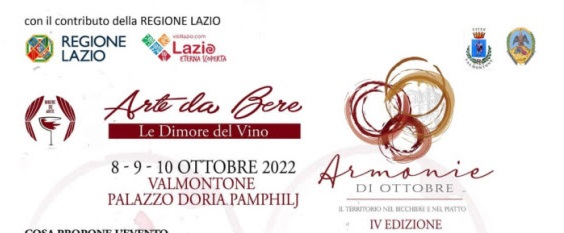 Dopo lo straordinario successo del 2019, e il lungo stop per la pandemia, dall’8 al 10 ottobre a Valmontone, nell’area della Città Metropolitana di Roma, torna a vivere la IV edizione di ARMONIE DI OTTOBRE, il festival organizzato dall’Associazione Bibere de Arte (nell’ambito del progetto “Arte da bere – Le dimore del vino”) per portare sui piatti e nei bicchieri un territorio e le sue eccellenze.