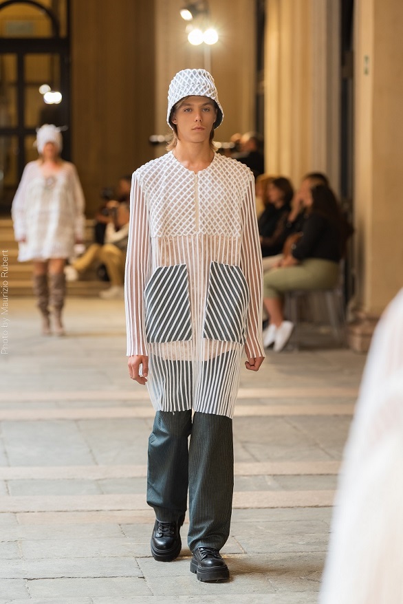 Giorgia Cicatello stilista non convenzionale e poliedrica, romana di origine, nel 2018 fonda il suo omonimo brand. Il percorso si muove dapprima nell’ambito artistico, dalla scenografia al costume teatrale, poi approda nell’alta sartoria. È da lì che si innamora del made in Italy, dell’accuratezza e delle qualità nascoste. Spinta dalla curiosità e dalla sete di conoscenza la giovane stilista, in pochi anni, raggiunge numerosi obiettivi e riconoscimenti. Viaggia a Parigi e Berlino per ampliare le sue vedute, per raccogliere esperienze che poi riporterà nel suo brand, attraverso il quale avrà modo, in poco tempo, di partecipare ad importanti eventi come “Biennale di Venezia” nel 2019, “Festival del cinema di Venezia 2021” e calca passerelle importanti come quella di Milano. “Authentic self - The Collection Power of Uniqueness”, il tema della propria collezione. Tessuti pregiati, ricami che percorrono il corpo come una seconda pelle, rappresentando l’interiorità e la bellezza umana, che si preserva con i tessuti naturali dei capispalla e delle giacche. Predomina il bianco nella sua scelta cromatica, un colore che porta in sé tutti i colori simbolo di una consapevolezza propria e di un raggiungimento vero della libertà.