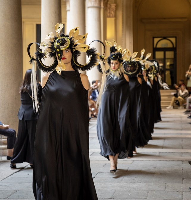 Milano, sono le ore 9 del 23 settembre 2022: a Palazzo Turati, capolavoro Neorinascimentale fatto realizzare dall’omonimo conte tra il 1873 ed il 1876, aleggia una sensazione di dolce ansia, tensione; il cortile conta, tra le colonne imponenti, un numero indefinito di fotografi e videomaker intenti a sistemare l’attrezzatura delle grandi occasioni. Dall’interno dei saloni si odono le voci di numerosi interpreti che hanno l’obiettivo di tradurre direttive a modelle e modelli in preparazione.