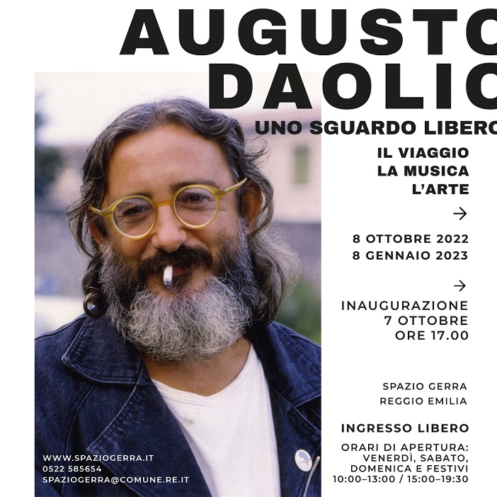 Il 7 ottobre 2022, esattamente a trent’anni dalla sua prematura scomparsa, presso lo Spazio Gerra di Reggio Emilia, si apriranno le porte di un’esposizione che racconterà la poliedricità di Augusto Daolio, fondatore e voce indimenticata de I Nomadi: “Augusto Daolio: uno sguardo libero. il viaggio – la musica – l’arte”.