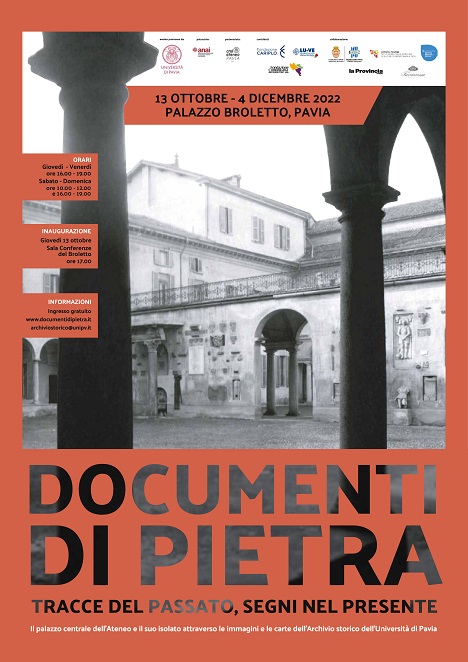 Giovedì 13 ottobre 2022 alle ore 17.00 presso lo Spazio per le Arti Contemporanee di Palazzo Broletto a Pavia sarà inaugurata la mostra “Documenti di pietra: tracce del passato, segni nel presente. Il palazzo centrale dell’Ateneo e il suo isolato attraverso le immagini e le carte dell’Archivio storico dell’Università di Pavia”, organizzata dal Servizio Sistema Archivistico di Ateneo in collaborazione con l’Assessorato alla Cultura del Comune di Pavia, in partenariato con il CRAL Ateneo Pavia e con il patrocinio dell’ANAI Associazione Nazionale Archivistica Italiana.
