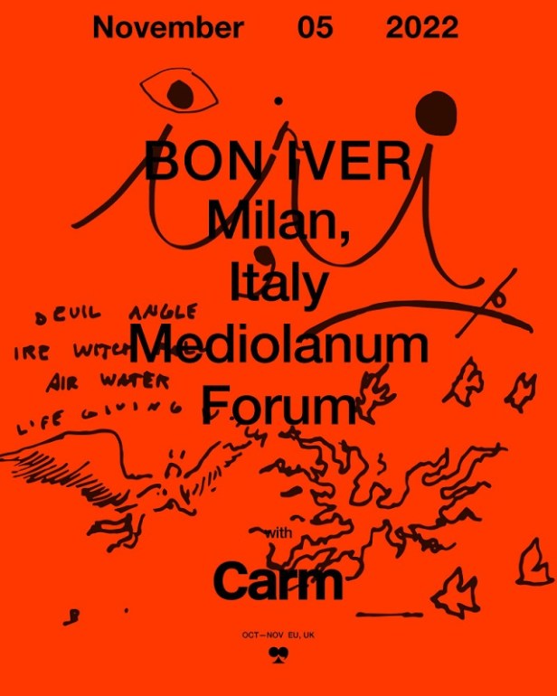 Finalmente è arrivato il momento del grande e attesissimo ritorno in Italia dei Bon Iver. A più di tre anni dal suo ultimo indimenticabile live tutto esaurito al Castello Scaligero di Villafranca di Verona del 17 luglio 2019, la creatura musicale di Justin Vernon torna nel nostro Paese per un unico concerto, organizzato da DNA Concerti, in programma sabato 5 novembre al Mediolanum Forum di Assago. I Bon Iver arrivano in Italia per presentare ai numerosi e appassionati fan italiani l’ultimo acclamatissimo album, “i,i”, uscito ad agosto 2019 per l’etichetta indipendente Jagjagwar e candidato a tre Grammy Awards (album dell’anno, miglior album di musica alternativa e registrazione dell’anno). È stata una lunga attesa, ma ne sarà valsa la pena: sarà un concerto prezioso, pronto a rapire il cuore, un’immersione pura e totalizzante nelle intense atmosfere indie folk della band statunitense, in cui Vernon e i suoi compagni di band si riaffermano come maestri moderni nello spingere l’involucro sperimentale con una musica che risuona su scala profondamente emotiva (AzCentral).,Perché se nei dischi, la musica dei Bon Iver sembra cercare di sfuggire alla realtà materiale, sul palco, la musica ha carne, peso, gravità (Consequence of Sound). Un live che promette di essere un’esperienza emozionale e sensoriale indimenticabile grazie anche alla forte attenzione alla qualità del suono: la band, grazie all’utilizzo dell’innovativa tecnologia L-ISA – Immersive Hyperreal Sound, riesce a ottenere un sound immersivo e regalare all’ascoltatore la miglior connessione possibile con la musica, profonda e diretta, facendolo sentire immerso e parte integrante dello show. La data italiana sarà aperta da CARM, il progetto solista del polistrumentista CJ Camerieri, che ha collaborato – oltre che con i Bon Iver – con artisti del calibro di Paul Simon, The National e Sufjan Stevens. In questi anni di attesa per poter tornare in tour, i Bon Iver hanno comunque continuato a dedicarsi alla musica e a stare vicino al loro pubblico.