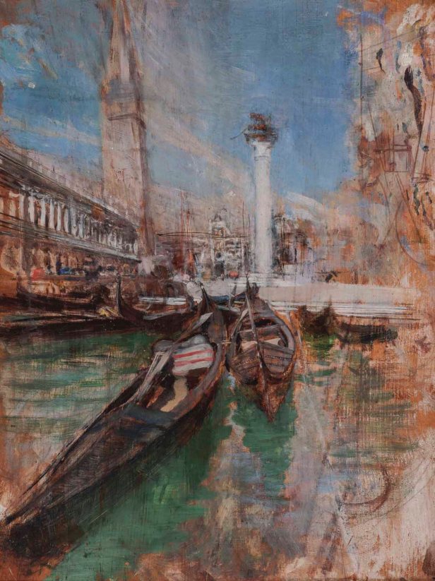 Attenzione verrà data in mostra anche alla resa del paesaggio, in particolare dell’amata Venezia, visitata più volte fin dalla fine degli anni ‘80 e catturata non solo in innumerevoli dipinti, tra cui Gondole davanti a Piazza San Marco (1895 circa) ma anche in molti disegni, dal tratto ora fitto e dinamico come in Palazzi sul Canal Grande (1890-1899), ora più tenue e sintetico come in Ormeggi e gondole (1880-1889).