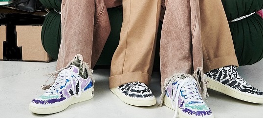Le Veja V-10 in pelle e la sua versione high-top V-15, sono enfatizzate da un colorato motivo “scribble” che anima la tomaia, richiamando istintivi disegni di scuola.