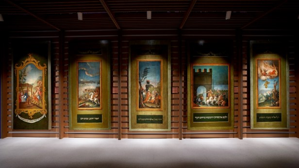 La tradizione vuole che dopo la costruzione, la capanna venga abbellita e decorata per diventare un luogo confortevole, anche se effimero e suscettibile alle intemperie. La mostra presenta per la prima volta, 10 pannelli lignei decorativi, prodotti in area veneziana di una sukkah (capanna) della fine del XVIII o del XIX secolo, di proprietà dell’Abbazia di Praglia: opere d’arte di valore inestimabile sopravvissute alla loro natura effimera e rimaste per questo inaccessibili al grande pubblico.