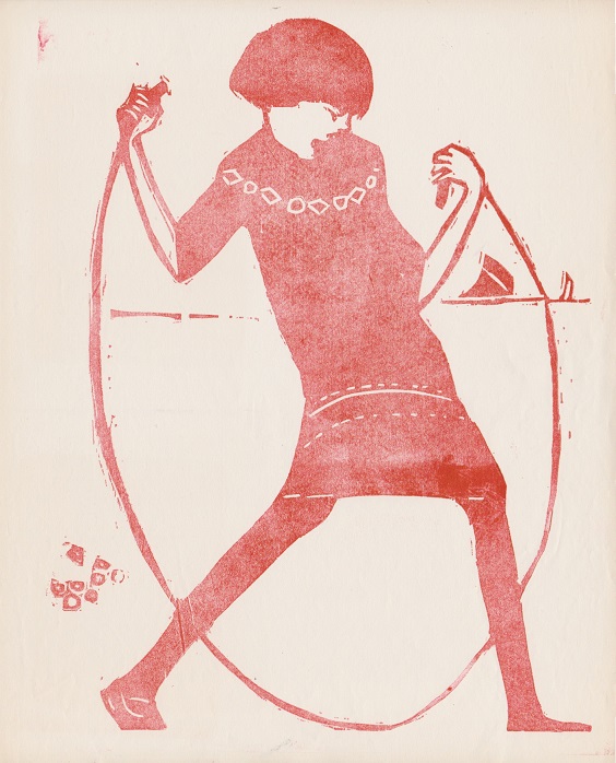 Attingendo a importanti collezioni private − cruciale il prestito proveniente dalla raccolta di Carla Conforto e Agostino Pagano di Milano che annovera nel suo catalogo alcuni dei pochi disegni conosciuti di Mantelli − è stato possibile ottenere inedite prove di stampa annotate dallo stesso artista e di incisori suoi contemporanei: per inquadrare la figura di Mantelli una parte della mostra è, infatti, dedicata a una panoramica sulla xilografia italiana del Novecento che, dalle fonti secessioniste, si volgeva all’espressionismo e a nuove tendenze. Particolare attenzione è stata data a quegli artisti che lo hanno in qualche modo influenzato e nel cui contesto culturale la figura di Mantelli si è inserita. Una sezione della mostra mette a confronto alcuni lavori di incisori italiani come Adolfo De Carolis, Francesco Nonni, Gino Barbieri, Lorenzo Viani, Gino Carlo Sensani, Arturo Martini, Moses Levy e lo inserisce nel più ampio panorama europeo con opere degli espressionisti tedeschi, tra cui spiccano Karl Smith Rottluff, Max Beckmann, Max Pechstein, Ernst Ludwig Kirchner – la cui presenza è arricchita da un importante prestito proveniente dalla Collezione Luciana Tabarroni della Pinacoteca Nazionale di Bologna −, incisori legati alla Secessione di Vienna oppure di ambito fiammingo come Frans Masereel e Edgard Tytgat. Sarà possibile così confrontare la Bimba che salta la corda di Mantelli con l’iconica Fränzi (Nudo di fanciulla in piedi) di Eric Heckel (Collezione Luciana Tabarroni) o invece i suoi ritratti con i lavori di Egon Schiele (in mostra la cartella per le riproduzioni dei disegni dell’artista austriaco, Zeichnungen, pubblicata a Vienna nel 1917) e il numero di «Ver Sacrum» contenente Ein Decorativer Fleek in “Roth und Grun” di Koloman Moser.