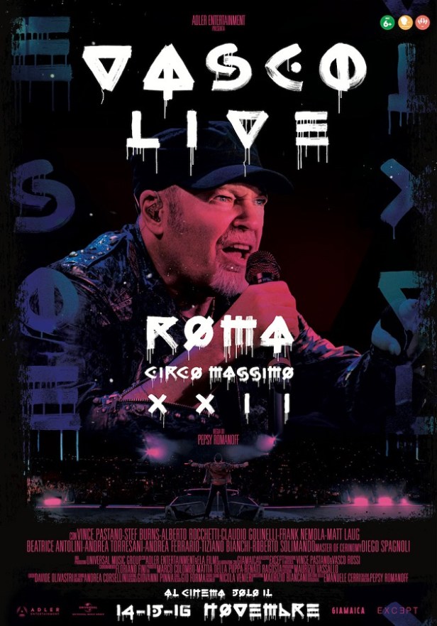 Prodotto da Universal Music Italy con Adler Entertainment e Ela Film in collaborazione con Giamaica, VASCO LIVE ROMA CIRCO MASSIMO sarà in anteprima solo al cinema il 14, 15 e 16 novembre distribuito da Adler Entertainment.