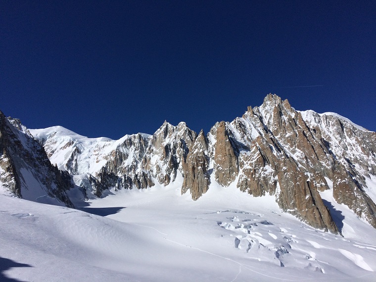 Una giornata di freeride in alta montagna, con partenza dalla stazione Skyway di Punta Helbronner (3462 m) per scendere lungo l’intero ghiacciaio (22 km di discesa con un dislivello negativo di 2500 m); al termine della valle si risale fino alla sortie, e poi giù in picchiata fino a Chamonix, per i più esperti anche in snowboard.