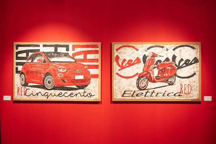 Le Icone del Made in Italy, mostra curata e prodotta dalla Fondazione Piaggio e dall’architetto Luca Masi, con layout e il progetto grafico di Silvia Paracchini e Claudio Bellosta, è un elogio alle forme e alla storiadi uno dei più significativi veicoli iconici del nostro paese, una dimostrazione d’amore e di orgoglio per il made in Italy, che si incarna attraverso l’arte, il colore, la spatola e la passione di Stefano Berardino.