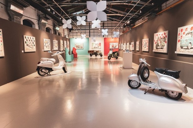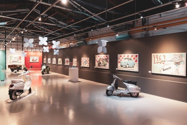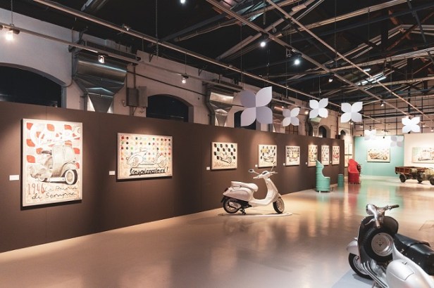 Il tutto nel contesto di un allestimento armonico e coinvolgente, che trova una perfetta collocazione nella sala delle mostre temporanee del Museo Piaggio, nel cuore delle vecchie officine Piaggio e in dialogo con i modelli unici esposti da questo vero e proprio “tempio” della storia della mobilità e dello stile italiani.