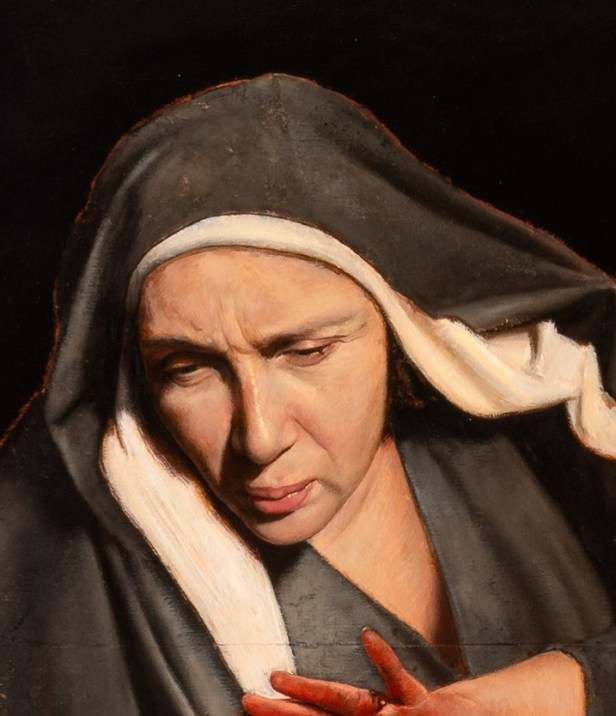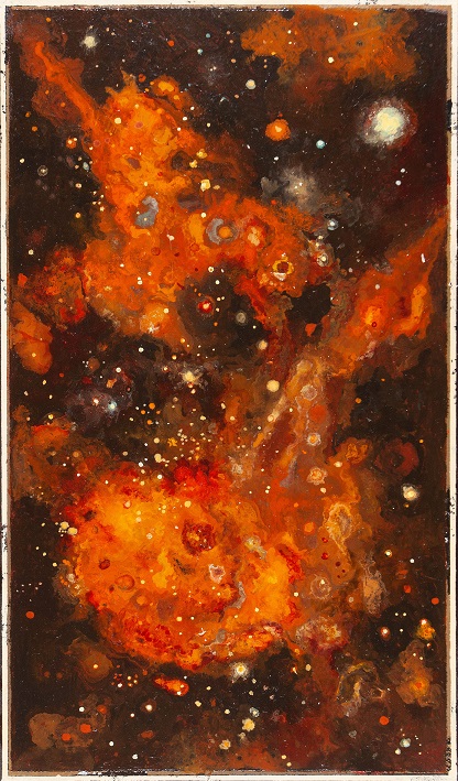 In ogni opera convivono forti contrasti che smuovono sentimenti profondi: il sofferente ritratto di una madre, la crudezza della carne oltraggiata, l’illusione trompe l’oeil del legno, i tormenti astratti della tela, sublimano in immagini cosmiche, galassie, eclissi, nebulose creando una tensione verso l’Assoluto e mutando le installazioni in rappresentazioni totemiche dell’esistenza.