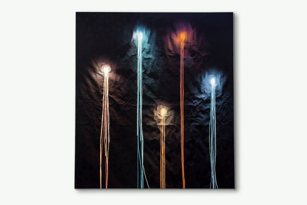 Il percorso prosegue con una grande installazione della nuova serie Lights. Opere organiche, dove i punti luminosi sono sovrapposti all’impronta di un pugno. Dipinti sopra la tela nera dei Breaking Through, la loro luce emerge dal buio come nella tradizione più classicadella pittura, di cui ne riconosciamo la tempesta e la forza espressiva.
