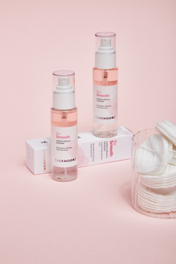BeSmooth – Nebbia Bifasica Idratante: utilizza una miscela bifasica che contiene sia acque naturali e pantenolo nella parte acquosa per un’idratazione più superficiale mentre nella parte oleosa è presente un mix di oli preziosi, tra cui il più importante è quello di Elicriso, potente scudo naturale contro l’invecchiamento cutaneo, in grado di lenire la secchezza dovuta al freddo e le scottature solari. Questo prodotto shakerato è utile durante la fase mestruale contro la secchezza e l’aridità cutanea, mentre in fase follicolare/ovulazione può essere usata senza agitare, per un effetto rinfrescante.