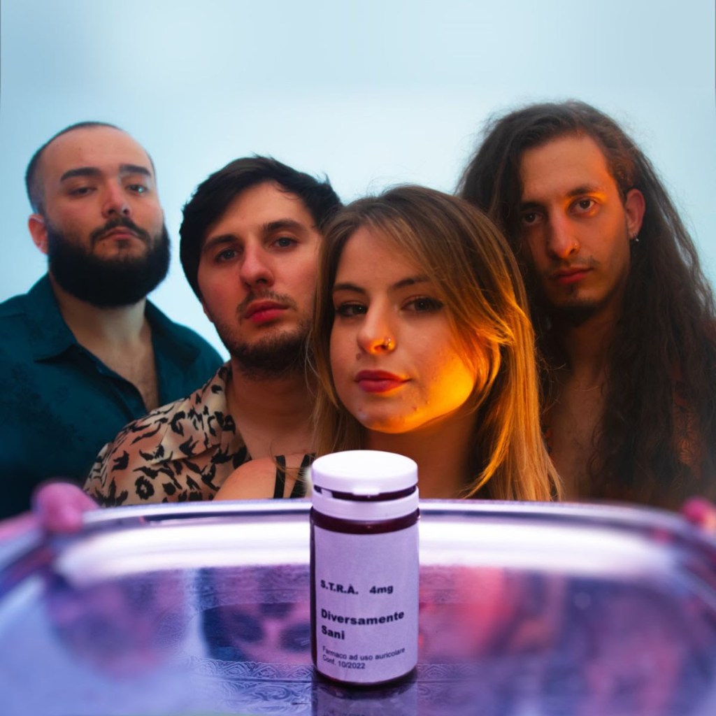 Gli Strà invitano quindi quelle persone ad andare con loro, per scoprire insieme se effettivamente, sotto sotto, non siamo tutti Diversamente Sani. Gli Strà sono una band romana nata nel 2011 quando il chitarrista Valerio e il primo bassista Federico iniziano a suonare con un amico per gioco all’età di 11 anni. Con l’ingresso della cantante Erica, la band inizia a crescere, sviluppando uno stile proprio, dato soprattutto dai tanti cambi al suo interno e dalle mille contaminazioni, date dalle differenti origini musicali di ognuno dei musicisti. Nel 2016 entra nel gruppo Giordano nel ruolo di batterista portando il proprio background, ma la formazione definitiva si ha all’entrata di Lorenzo al basso dopo il ritiro del co-fondatore Federico. Il rock italiano degli Strà è decisamente una tipologia di musica che non ha mai toccato la penisola italiana, radicato molto nel classico, ma contaminato di modernità e di generi molto diversi tra loro, tanto che la band ha difficoltà a inserirsi in un genere preciso. Ogni brano è diverso dal precedente e spesso i testi racchiudono delle critiche sociali non troppo velate, come solo il rock può trattare.