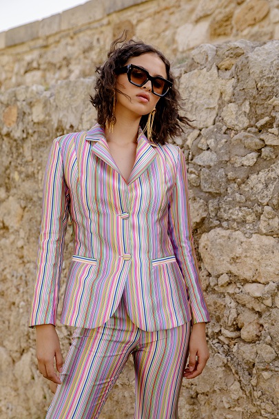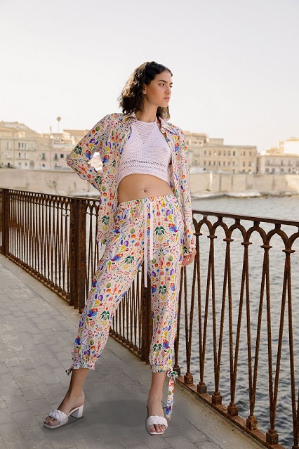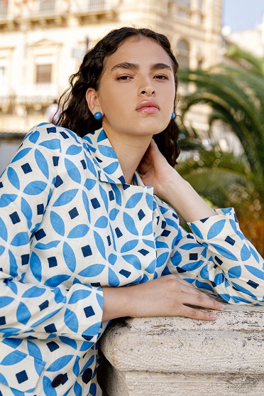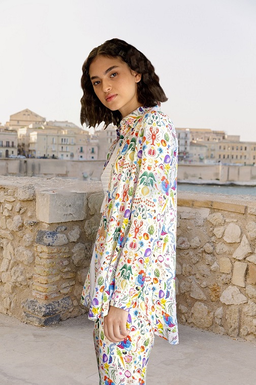 La precisione e la sartorialità dei tagli vengono affiancate dalle esclusive stampe che rendono i tessuti personalizzati e dinamici, testimoniando l’artigianalità e la cura sartoriale che contraddistingue da sempre il brand.