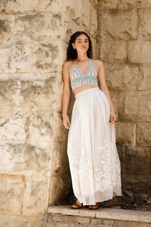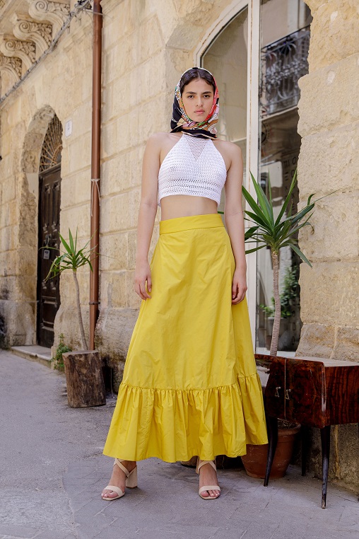 La collezione esplora in maniera giocosa e leggera il tema che esprime la sua massima espressione negli abiti estivi, svolazzanti e leggeri.