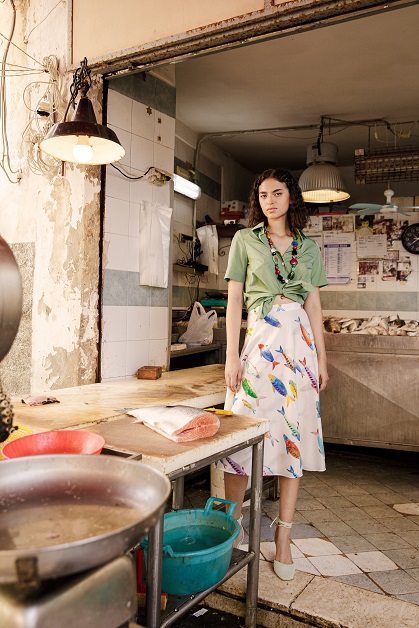 Linee ampie, morbide oppure strizzate in vita da tagli strategici, capi adatti a tutte le personalità, colori vivacissimi e stampe piccole e grandi si mescolano tra di loro veicolando un unico messaggio: il cibo è fondamentale per restare in salute ed è prezioso per ciò che esso rappresenta.