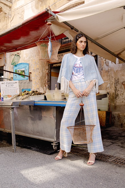 Con leggerezza e allegria caratterizza il “gusto” e l’aspetto dei look, rimanendo sempre fedele all’inconfondibile essenza stilistica e di identità del brand.