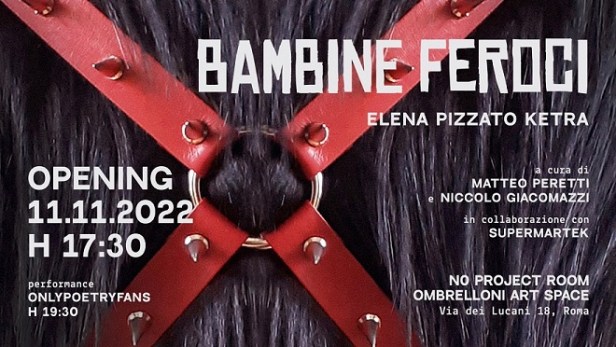 La N0 Project Room (via dei Lucani 18, Roma), in collaborazione con Supermartek, presenta fino al 10 dicembre 2022 la mostra personale "Bambine feroci" di Elena Pizzato Ketra a cura di Matteo Peretti e Niccolò Giacomazzi. La mostra presenta due serie distinte di lavori che costituiscono la ricerca dell’artista improntata sul ruolo e il potere della donna. Una riflessione che indaga i concetti di female empowerment e gender identity mettendo in luce gli aspetti caratteristici più soffocati dall’opinione pubblica. Il titolo della mostra mette in connubio i due termini “bambine” e “feroci”, all’apparenza ossimorici, che in questa occasione vogliono sostenere il possibile sfatare dei classici luoghi comuni. La percezione celestiale della donna-bambolina viene ribaltata nelle opere Serialmirrors, una serie di specchi antichi lavorati con tessuti, cinghie e borchie, riflette alcune delle più famose storie di serial killer donne che in epoche passate hanno già demolito certe convinzioni e talvolta creato leggende. Un processo di estremizzazione dei simboli si mette in luce nell’opera GirlPower 4010, dove un tirapugni a dondolo rosa si presenta come simbolo di forza e rivalsa femminile. L’accostamento di questa serie di opere rivela come anche il “gentil sesso”, in certe situazioni di disagio o oppressione, può essere letale. Elena Pizzato Ketra sviluppa il suo percorso formativo all’Accademia di Belle Arti di Venezia, indirizzando la sua ricerca sul corpo e le modificazioni artificiali e sperimentando molteplici forme materiche e sistemi mediali. Frequenta Amsterdam, dove attraverso mostre e residenze, approfondisce i concetti di feticcio ed estetica inorganica ispirandosi al trattato di Mario Perniola “Il Sex appeal dell’inorganico “. Spaziando dall’estroflessione alla scultura fino all’installazione e al video, l’artista scoperchia un sottomondo popolato di bambole spogliate delle loro rassicuranti e imposte crinoline e rivestite di latex genderfluid, specchi che riflettono storie di donne fuori dagli schemi, tirapugni trasformati in dondoli per bambine feroci, presine all’uncinetto realizzate dalla nonna 93enne con scritte scottanti. Empowerment femminile, inclusione sociale, coscienza del senso di sé sono i temi maggiormente affrontati dall’artista. www.ketra.it