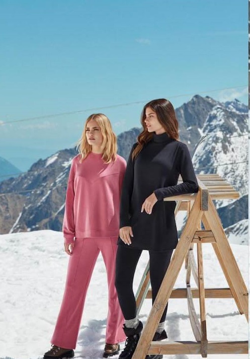 Ad arricchire la collezione ci sono i leggings, abbinabili alla maxi-maglia manica lunga e collo alto proposto nelle nuances di tendenza: blooming Pink ed evergreen, o nei must vaniglia e nero.
