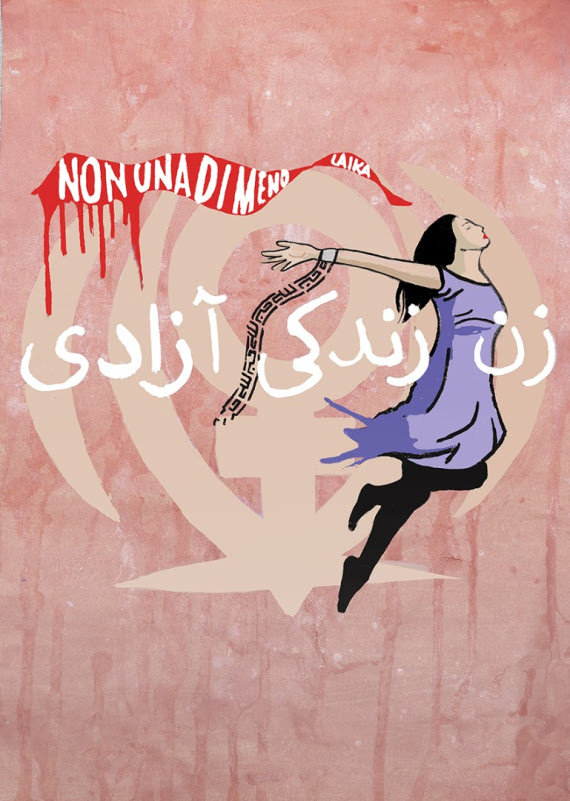 “Il mio non è un attacco all’Islam, ma ad uno stato che impone la religione come legge. Ogni donna iraniana deve essere libera di credere o non credere, indossare o togliere il velo. Libera dalle discriminazioni e dalle paure, e soprattutto LIBERA DI VIVERE. Da Teheran, alle città curde del nord, passando per l’Afghanistan fino a Roma… ‘basta guerre sui nostri corpi”, basta violenza, morte e paura.A Mahsa Amini, Nasrin Ghadri, a tutte le donne che non ci sono più e a tutte quelle che ogni giorno lottano: Donna, Vita, Libertà!” ha concluso Laika.