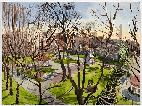 La lunga infilata di opere della terza e ultima sala porterà infine la cronologia ai primi anni Novanta. Insieme ad alcune opere londinesi, vi saranno esposti per lo più acquerelli dedicati agli amici, anche italiani, e ai viaggi, con la presenza particolarmente importante di grandi fogli dedicati a Venezia, città amata e frequentata, sfida luministica, ma anche soggetto che Procktor – con humor pari solo alla sprezzatura – tornò volentieri a sviluppare anche dal basement della sua casa di Manchester Street.