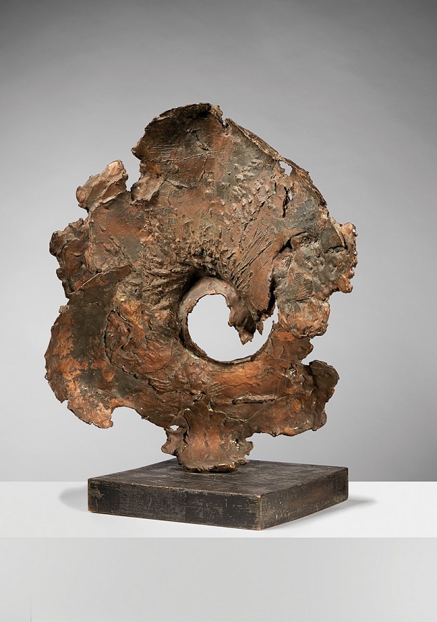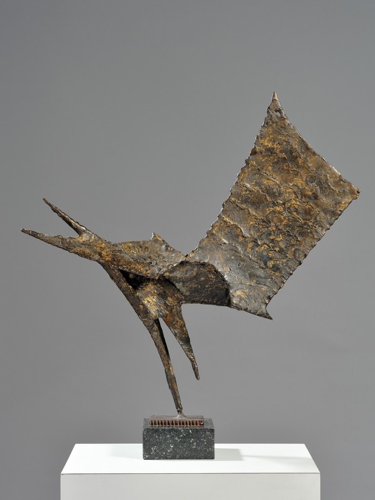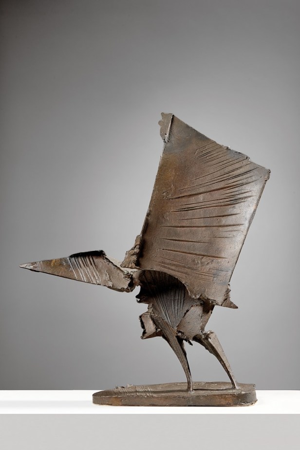 Scultore comunque e sempre, anche nei passaggi cruciali degli anni Sessanta, allorché si compie il passaggio dalle immagini metamorfiche di una natura che pare dissolvere ogni immediatezza a richiami empirici, dove il rimando naturalistico si traduce in vago riferimento per liberare l’immagine nelle forme plastiche “pure” dei cicli delle “Foglie”, dei “Voli” e delle “Ali”.