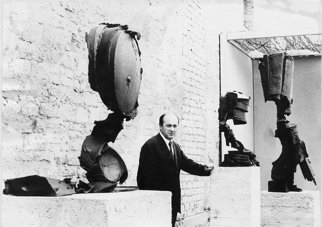 Scultore comunque e sempre, anche nei passaggi cruciali degli anni Sessanta, allorché si compie il passaggio dalle immagini metamorfiche di una natura che pare dissolvere ogni immediatezza a richiami empirici, dove il rimando naturalistico si traduce in vago riferimento per liberare l’immagine nelle forme plastiche “pure” dei cicli delle “Foglie”, dei “Voli” e delle “Ali”.