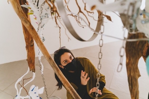 “I lavori di Camilla Alberti e Anouk Chambaz riflettono sulla crisi ecologica da due prospettive molto diverse ma che ci pongono davanti alla stessa domanda: quale posizione vogliamo assumere nel presente e quale ruolo vogliamo avere nel futuro della Terra? – spiega Stefania Rispoli, curatrice della mostra – Nei ricami e nelle sculture di Camilla non c’è traccia di vita umana, l’artista guarda al mondo vegetale e ai suoi metodi di organizzazione e sopravvivenza immaginando creature che resistono e avanzano aldilà della nostra presenza. Anouk mette invece al centro dei suoi lavori l’uomo, unico responsabile e unica possibilità di salvezza per sovvertire l’ordine attuale delle cose. I bambini che campeggiano nelle arcate della Sala d’Arme sono a tratti solenni, il loro sguardo non ci abbandona, sono il futuro ma anche il presente del nostro pianeta, come testimoniano le tante battaglie che portano avanti dimostrando una sensibilità e una lungimiranza maggiore di noi adulti. Qualsiasi futuro ciascuno di noi immagina non può che partire da un’ammissione del nostro fallimento”.