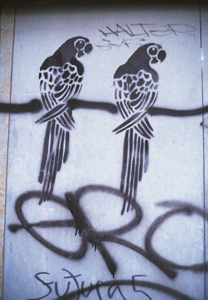 Le quaranta fotografie esposte a Colorno, scelte tra le centinaia che sono nel suo archivio, sono state scattate da Nespolo tra il 1981 e il 1997 nella Grande Mela. Quasi ogni giorno lui “vaga” per alcune ore negli antri e nelle strade di New York, soprattutto nel Sud Manhattan, e fissa con una piccola Leica ciò che lo colpisce, in particolare i graffiti che cominciano ad apparire sui muri, le vetrine dei negozi, gli interni delle gallerie e dei musei (immagini che poi transiteranno nei suoi dipinti). New York vive all’epoca l’esplosione del graffitismo: autori autodidatti, che si considerano artisti, impregnati della cultura del ghetto; Nespolo conosce Rammelzee e Keith Haring, che disegna nelle metro, e ammira Richard Hambleton, il “maestro della minaccia”, come viene definito per le sue inquietanti ombre nere.