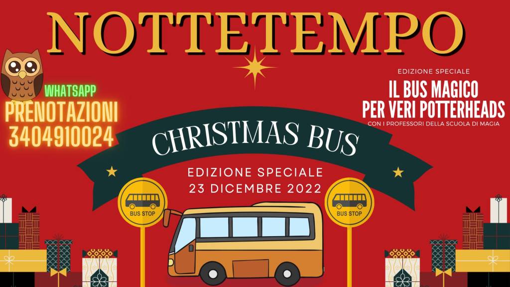 Genova, venerdì 23 dicembre 2022 alle ore 17.30 lo staff del trenino dedicato ai fan del maghetto più famoso del mondo, in collaborazione con Avventure Cittadine Genova e Genova Dreams, sono lieti di presentare NOTTETEMPO il bus magico di Natale, la novità dell’anno ideata da Sophie Lamour, che andrà alla scoperta di luoghi e personaggi attraverso un vero e proprio tour degli incantesimi questa volta in edizione speciale dedicata al Natale.