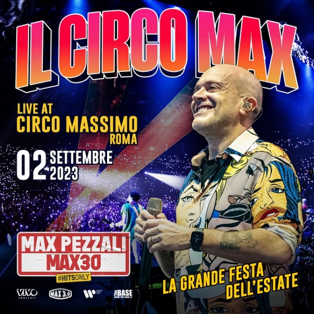 Max Pezzali ha annunciato Il Circo Max: l’unico imperdibile appuntamento estivo che farà tappa a Roma, continuando a coinvolgere intere generazioni con veri e propri momenti iconici e di travolgente entusiasmo: appuntamento al Circo Max sabato 2 settembre 2023. I biglietti sono disponibili online e nei punti vendita da giovedì 22 dicembre alle ore 11.00. Info: www.vivoconcerti.com. Dopo le celebrazioni a luglio 2022 dei suoi 30 anni di carriera con la doppia data di SAN SIRO CANTA MAX, e l’inizio del travolgente tour sold out nei Palasport #HITSONLY, ora la grande festa di Max fa tappa al Circo Massimo di Roma, uno dei luoghi storici della Capitale nonché tra le più suggestive e celebri location di musica dal vivo all’aperto in Italia e nel mondo. IL CIRCO MAX sarà l’unica tappa estiva open air del 2023 di Max Pezzali. Cantare a squarciagola, questa è la chiave per uno spettacolo basato solo ed esclusivamente sulle grandi hit della carriera di Max: da HANNO UCCISO L’UOMO RAGNO, lo straordinario debutto che ha conquistato all’istante tutta Italia nei primi anni novanta, alle leggendarie SEI UN MITO e NORD SUD OVEST EST, passando per la romanticissima COME MAI e la nostalgica, commovente GLI ANNI, la scaletta ripercorre successi caratterizzati da melodie indimenticabili e testi che sono entrati di diritto nel vocabolario di più generazioni, per un viaggio indietro nel tempo che fa rivivere le emozioni di un passato e un vissuto che nessun altro come Max Pezzali sa raccontare e riportare alla luce.