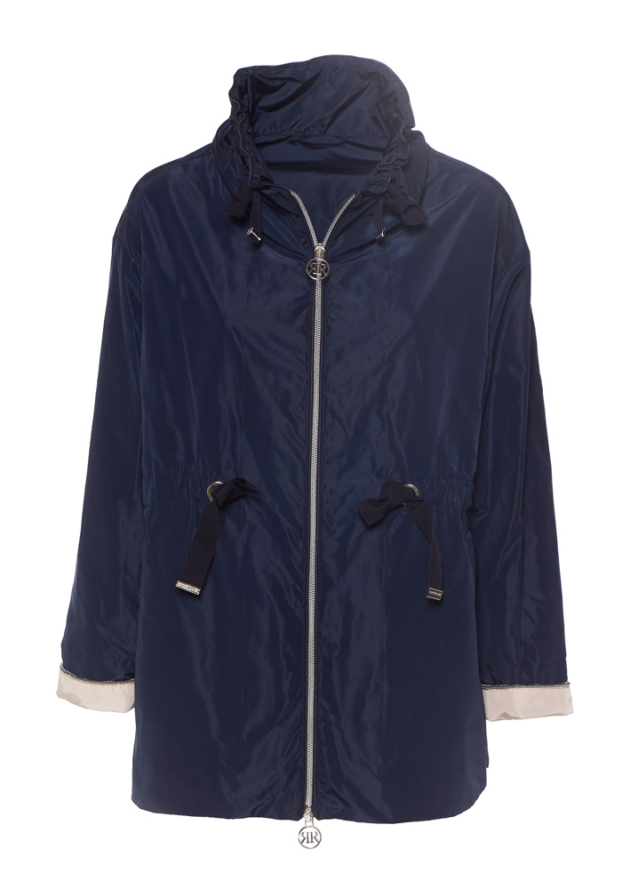 I materiali puntano sempre all’eccellenza, come il techno taffetà blu notte dall’aspetto fluido del parka che Rocco Ragni interpreta secondo i suoi canoni e la sua visione estetica, trasformandolo nel capo più easy-chic di primavera, perfetto sui jeans come su una vaporosa gonna da sera.