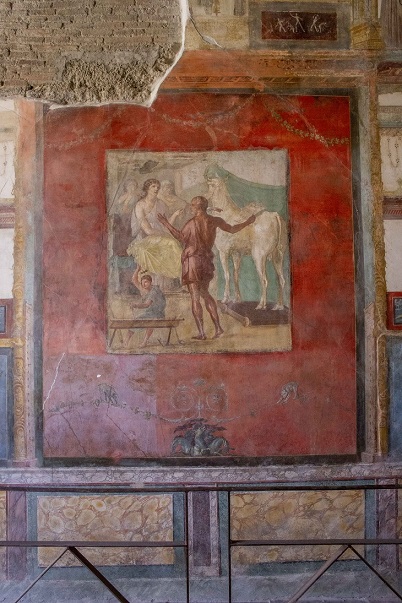La Casa dei Vettii, edificio iconico del Parco Archeologico di Pompei, è una tra le più ricche e famose di Pompei, posta sotto la protezione di Priapo dio della prosperità, dipinto a destra della porta, che simboleggia la prosperità economica dei proprietari, i liberti Aulus Vettius Restitutus e Aulus Vettius Conviva, divenuti ricchi grazie al commercio.