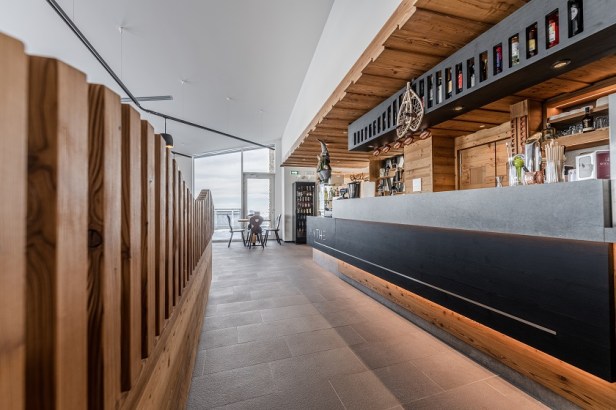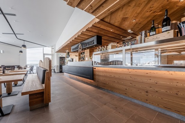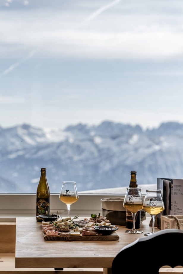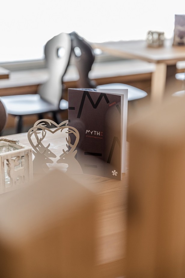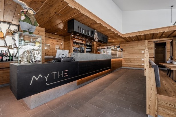 Mythe si propone come una vetrina dei prodotti tipici da degustare: dai panini (i nomi richiamano alcune delle cime della Val di Pejo) alle birre artigianali del birrificio Pejo, oltre a una selezione di Trentodoc e grappe trentine. Non solo enogastronomia gourmet, ma anche una visuale mozzafiato: dalle finestre del rifugio, a 3mila metri di quota, è infatti possibile ammirare le vette che hanno ispirato i menu.