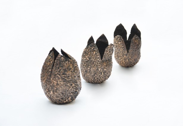 I materiali impiegati, quali lacci emostatici, guaine di biciclette ecc… vengono, infatti, in qualche modo rigenerati, riutilizzati, dando loro una seconda vita. Le opere in esposizione sono infatti, un annodarsi continuo di materiali che conducono ad un risultato estetico particolarmente stimolante. Il nodo, in particolare, ha sempre avuto un significativo ruolo nella creazione di opere d’arte del passato, dove, non è stato mai posizionato in modo casuale e decorativo.