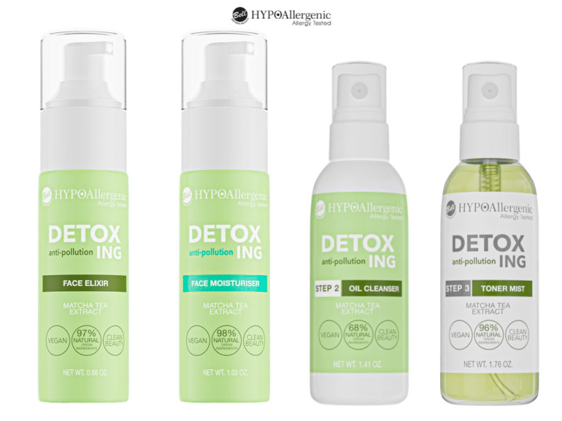 DETOXING è una linea completa firmata Bell Hypoallergenic che unisce la cura del viso, i prodotti per il trucco e per la rimozione del trucco.