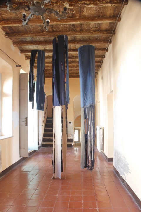 È invece una foresta l’installazione di Michela Cavagna (Biella, 1971), un progetto interamente sostenuto da Piacenza Cashmere, realizzato con materiale di scarto da lavorazione industriale tessile. Blu Forest mantiene i toni anomali della dimensione onirica ed evocano una Natura fredda, invernale, lontana dall’immaginario di una Madre Terra accogliente e consolatoria, in un’idea di foresta che contiene e declina entrambe – la madre e la matrigna. La foresta è riparo, ma è anche piena di voci e di rumori che non riconosciamo, è silenzio e il luogo dove si rifugiano le nostre paure. Ma è anche il ritmo placido del tempo naturale, il sussurro della brezza che muove leggera le foglie e placa ogni ansia. È essa stessa viaggio e meta, dentro e fuori di noi. Inferno3000 è invece il grande pannello dei DAMSS (12 metri di lunghezza per 4 di altezza), un lavoro colossale realizzato in oltre 4.500 ore di lavoro, con più di 200 mq di tessuto. I due artisti (Daniela Arnoldi, ingegnere ambientale e Marco Sarzi-Sartori, architetto), la cui ricerca è da anni rivolta all’uso critico dei materiali tessili imperniato all’upcycling, mettono l’osservatore di fronte all’unico inferno di cui abbiamo traccia visibile e concreta, proprio qui, sulla terra. Siamo noi ad aver trasformato il nostro pianeta in un luogo infernale e dunque l’unica via per la salvezza e il futuro è una responsabilità riconducibile esclusivamente a noi, individui e collettività.