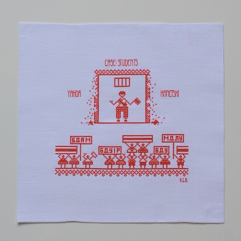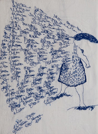 È il ricamo come linguaggio espressivo dell’arte la cifra comune a tutte le opere in mostra. A lungo considerato arte minore, pratica artigianale o passatempo per signorine della buona società, esso ha rappresentato tuttavia per secoli l’unico medium possibile per dar voce ad istanze personali o collettive in mancanza di altri mezzi di comunicazione oltre che, non raramente, l’unica possibilità di concretizzare la propria creatività per generazioni di donne. Questa elasticità lo rende ancora oggi adatto ad un’immersione nel quotidiano di cui indaga la dimensione domestica quanto quella pubblica, trasformandosi in una grammatica alternativa per raccontare il presente.