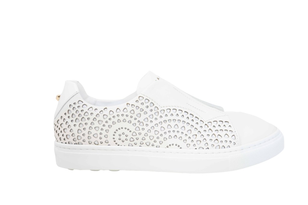 La seconda, Luminarie, è una tennis slip on tutta di pelle, interamente traforata con lo stesso motivo.