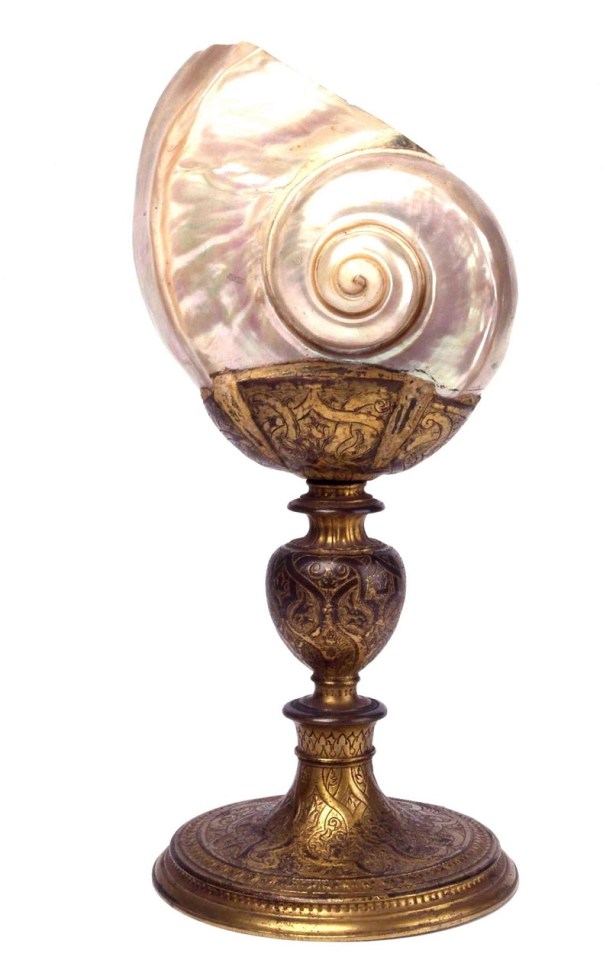 S’incontrano poi la piccola cassettina in ebano e osso caratterizzata da una singolare decorazione a marqueterie, tipica di una produzione artigiana sviluppatasi nella seconda metà del XIV secolo nell’area centroitaliana, in particolare toscana; il forzierino in rame rivestito di smalti blu e bianchi con raffinati ornamenti oro, che rientra nel novero di oggetti riferiti alla produzione veneziana quattro-cinquecentesca; l’affascinante coppa composta da una conchiglia innestata su un sostegno in rame dorato, con base circolare e profilo inciso ad acquaforte, ricondotta dalla critica alla cultura orafa del Cinquecento e dei primi anni del secolo successivo; la rarissima maschera da giustizia in acciaio brunito, modellata con i lineamenti di un uomo calvo di mezza età, composta da due parti congiunte prodotte nel nord Europa – verosimilmente in Germania o in Inghilterra – in epoche differenti, e poi assemblate in un unico manufatto nel XIX secolo; e il cappello maschile in pelle scamosciata di manifattura italiana, databile alla metà del Cinquecento.