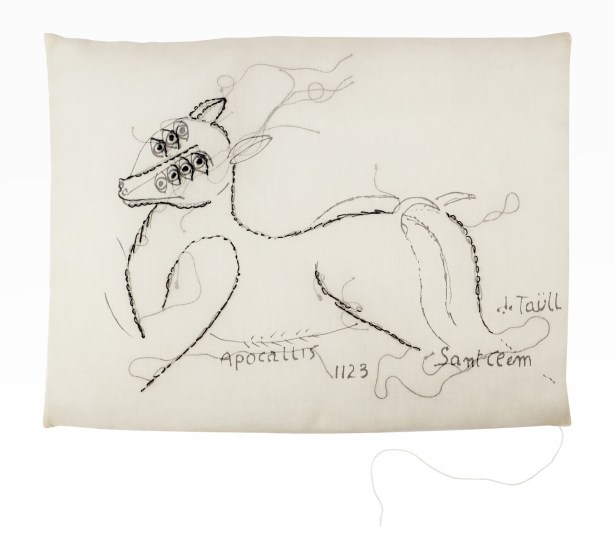 La mostra prende in considerazione un ampio arco cronologico che dagli anni ’80 arriva sino al 2022, esponendo un vasto corpus di opere, tra cui alcune inedite: la serie dei Piumari, delle vere e proprie sculture che prendono il piano della parete facendosi spazio attraverso i toni del bianco e dell’oro; la serie Nuovi racconti in cui i cuscini tessuti a mano mostrano figure immaginarie e antropomorfe e piccole iscrizioni che diventano statement artistici; fino ad arrivare alle ultime sperimentazioni con la pittura digitale e alle opere iconiche della serie L’era successiva, progetto on going iniziato dall’artista nel 2008 a partire da una riflessione che coinvolge in prima istanza l’universo femminile come portatore di uno sguardo altro.