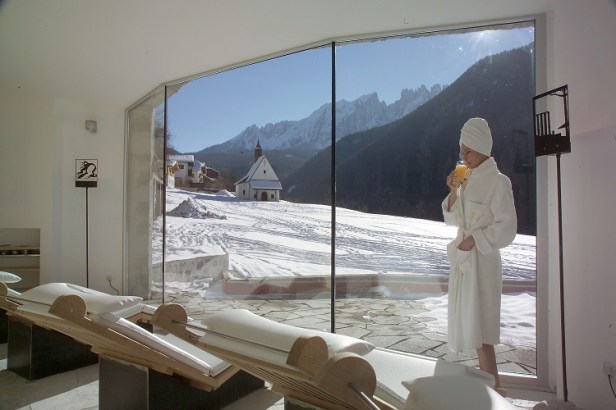 Per ritagliarsi qualche ora di relax totale, il centro benessere di 1500 mq con vista sulle vette e sul grande parco di 45mila mq – che in inverno di ammanta di bianco – offre una piscina esterna riscaldata per immergersi nel panorama, piscina coperta riscaldata incorniciata da grandi vetrate, incantevoli sale relax e il rigenerante mondo delle saune tra cui spicca la vasca salina. Alle mani sapienti delle estetiste sono affidati i trattamenti benessere con linee cosmetiche di prestigio e con l’esclusiva linea Cavallino Care dell’hotel, certificata bio, prodotta col latte delle cavalle dell’allevamento di famiglia.