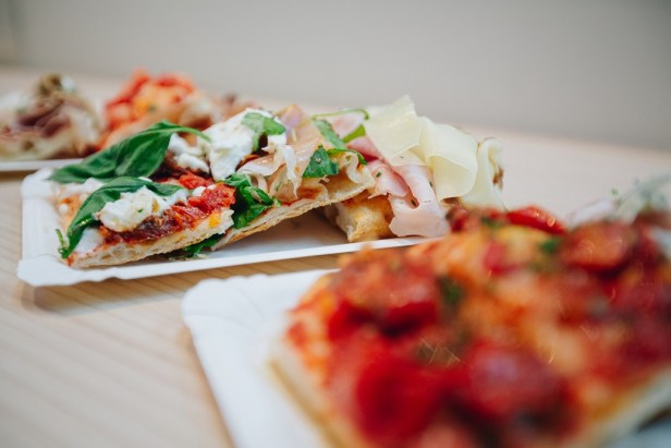 Il risultato è una pizza romana quadrata, gustosa, leggera e croccante, come da antica tradizione del Centro Italia.