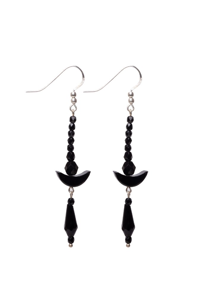 Una collezione che nasce dal casuale ritrovamento in un vecchio baule di riviste e di perline di vetro nero. Una collezione di orecchini pratici, unici e ideali per chi conduce una vita attiva.
