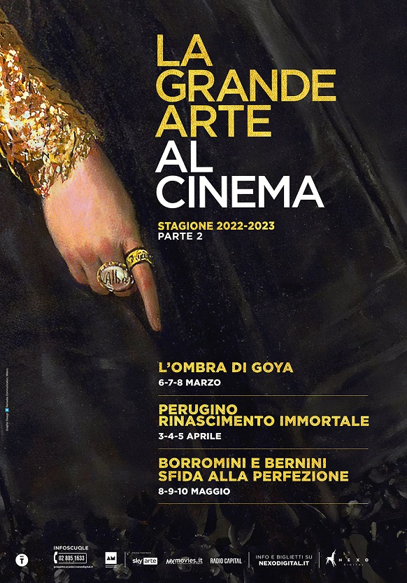 La Grande Arte al Cinema di Nexo Digital tornerà nelle sale italiane a marzo con tre nuovi titoli che spazieranno dal Rinascimento elegante, equilibrato e ponderato di Perugino agli anni turbolenti del Barocco con l’eterna sfida alla ricerca della perfezione tra Borromini e Bernini, sino ad arrivare all’arte drammatica, oscura, ironica e dissacrante del genio assoluto di Goya.